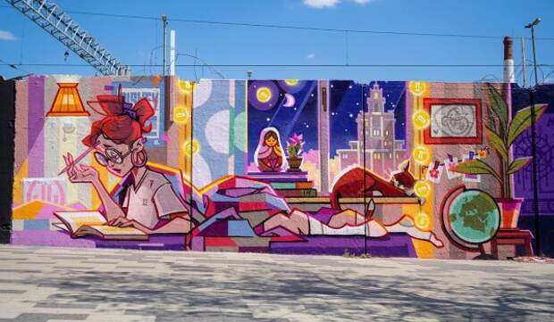 «Тема экспозиции — "Ритм города". Молодые авторы должны были показать, как преображается столица в течение суток. Единое бетонное полотно длиной 72,5 метра и высотой 2,5 метра разделили на шесть "холстов" — по числу художников. Они изобразили разные временные интервалы, так что на единой картине зритель видит, как меняется Москва — от утренней суеты до ночной атмосферы», — говорится в публикации.