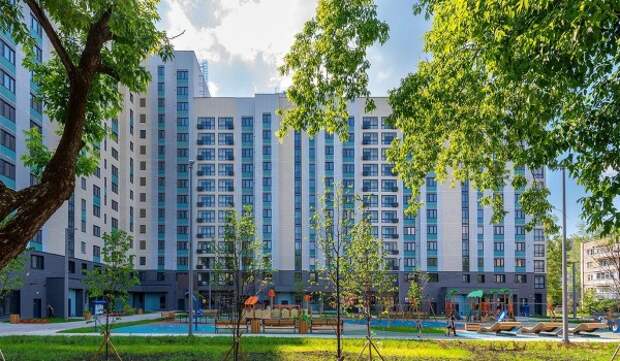 Придомовую территорию жилых комплексов по программе реновации благоустраивают. Здесь высаживают деревья и кустарники, разбивают газоны и цветники, оборудуют детские и спортивные площадки, а также места для отдыха.